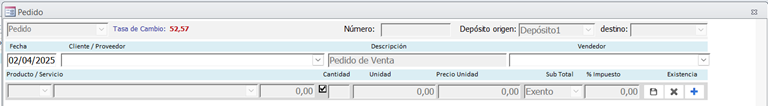 El registro de un pedido de venta se realiza activando la opción del menú principal: